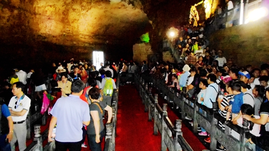 黃龍洞景區(qū)游客現(xiàn)錯峰潮